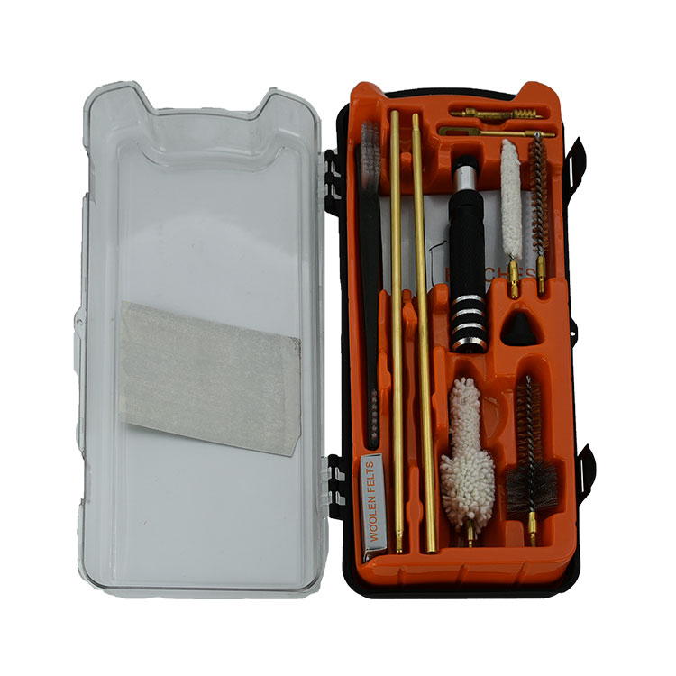 De kompakte våpenrensesettene gir deg alle de profesjonelle rengjøringsverktøyene for å møte forskjellige pistolkalibre. Blisterbrett hjelper deg å samle dem regelmessig. Det lille volumet og den sterke kofferten kan tillate deg å legge dem i våpenvesker eller sekker. Seriene er uten oljeflaske i.