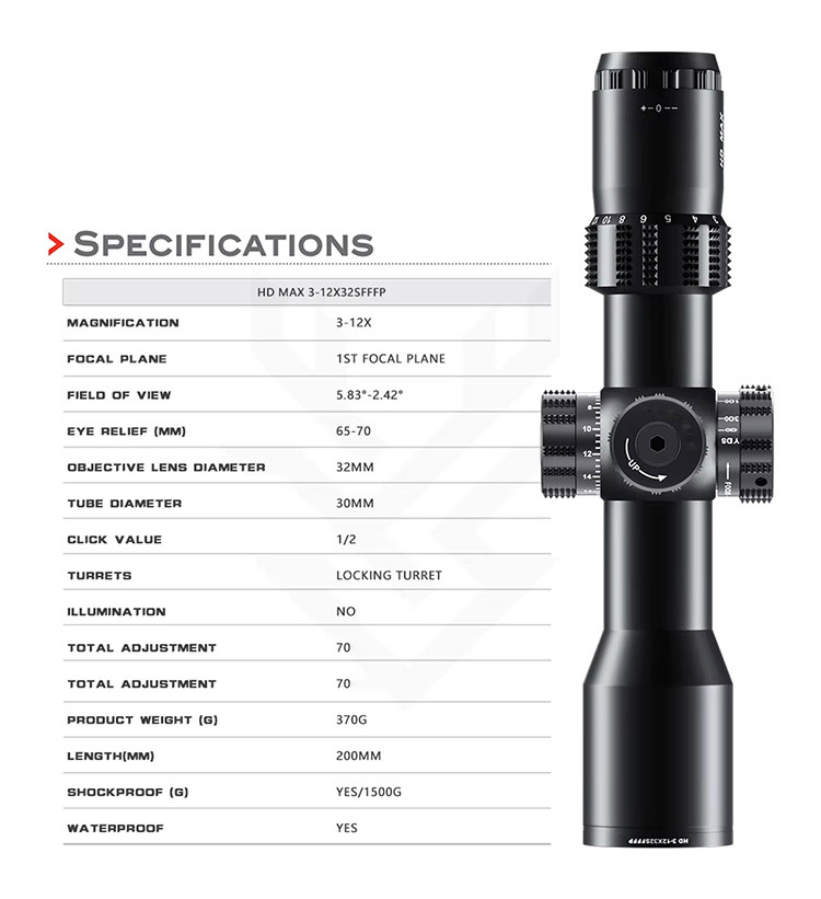 MAX 3-12X32SF FFP HD høylinse jakt monokulært teleskop engros