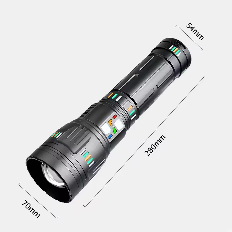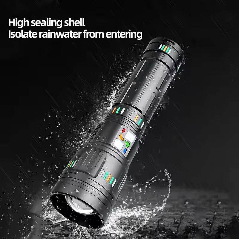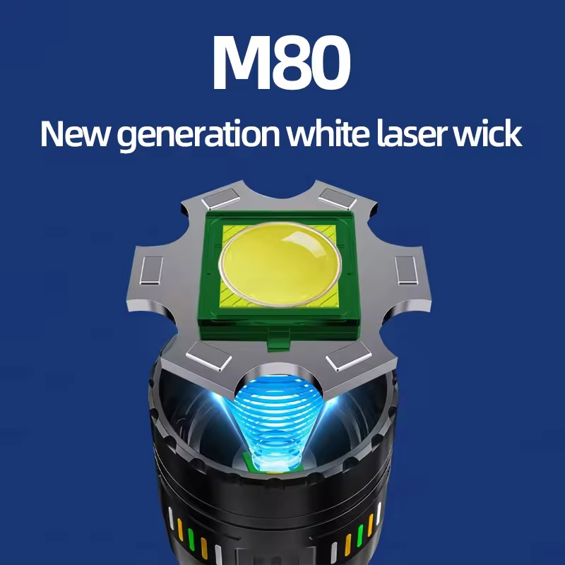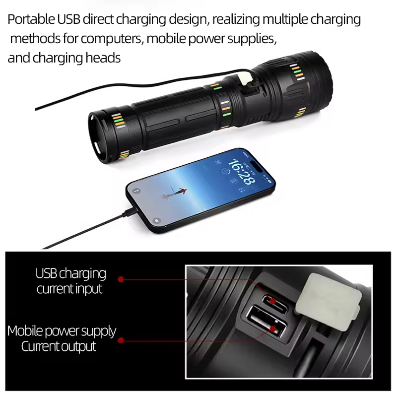 Multifunksjonell Intens lommelykt Type-c Lade Teleskopisk Fokusering Hvit laser Super lommelykt