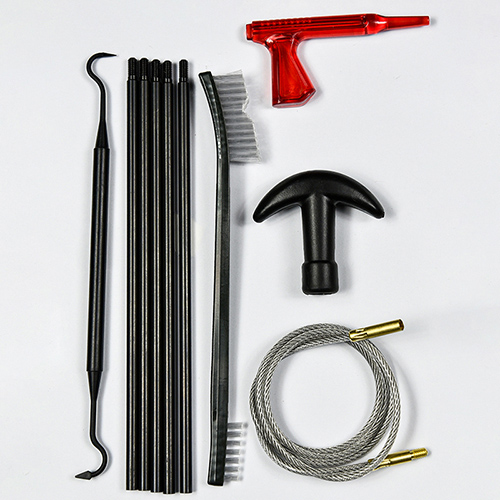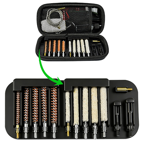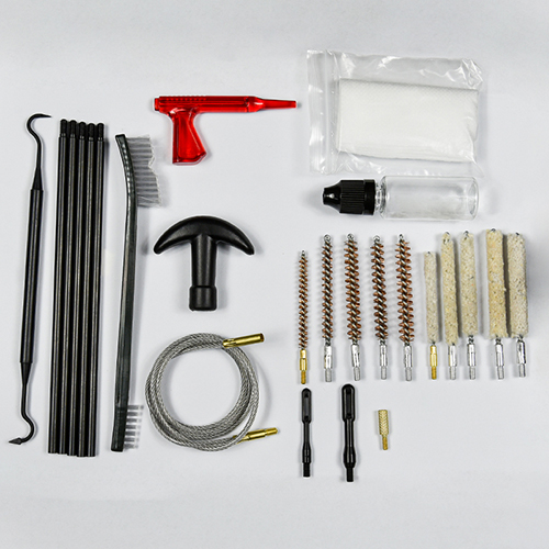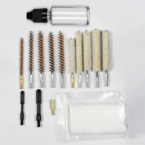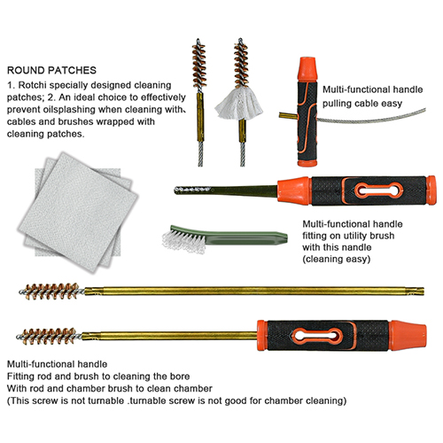 Riflens rengjøringssett inkluderer 5 størrelser (.177, .22, .243, .27, .30 cal.), messingbørster og bomullsmopper, 5 stenger, 2 kalber. Sand og svart farge for valg.