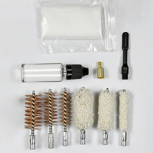 Haglerensesett inkluderer 3 størrelser (12/16G, 20G, 410). Messingbørster og