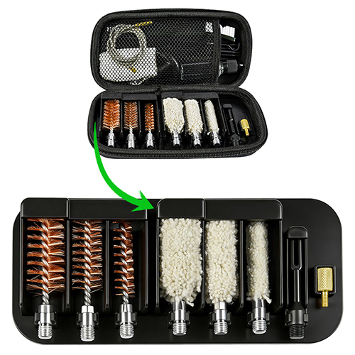 Haglerensesett inkluderer 3 størrelser (12/16G, 20G, 410). Messingbørster og bomullsmopper, 4 stenger 1 kalbe. Sand og svart farge for valg.