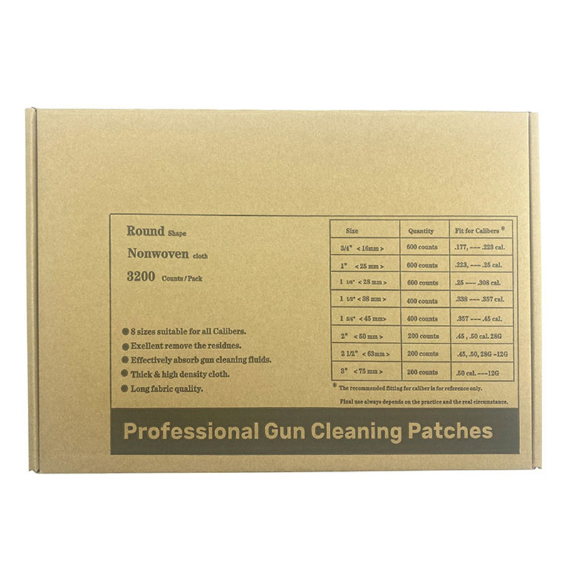 Universal hvit bomullsklut rund pistol rengjøringslapper Blisterboks 8 størrelser, 3540 tellinger ● 【All in One Combo Pack】 Rengjøringsplaster i 8 størrelser kan passe til skytevåpen med alle kaliber fra 0,177cal. til hagle 12G; Spar penger og tid til å kjøpe forskjellige størrelser for skytevåpen med forskjellige kaliber; ● 【Bomullsmateriale med høy absorpsjon】 Denne ikke-vevde kluten med høy absorbsjon. Quick absorberer resten av væskene, fjerner rester og rust fra boreoverflaten. ● 【Tykt materiale】 Tykk overflate av ikke-vevd tøy forsterker den rene ytelsen. ● 【Hver størrelse i et brett】 Vi pakker de 8 størrelsene med 8 brett. Og hver skuff med sin størrelse trykt ved siden av skuffen. Lett å finne og ta riktig størrelse fra pakken. ● 【OEM】 Kundelogoen er akseptabel.