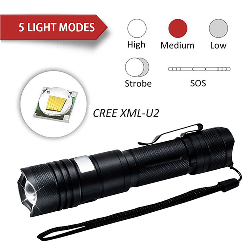 LED-lyskilde:xml Produktnavn:taktisk lommelykt USB Farge:Svart/ tilpasset